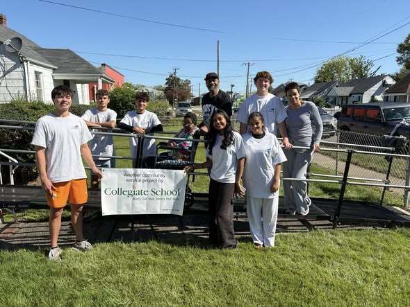 The dedicated student team from Collegiate gave up a beautiful Saturday morning on 10/4 to change the life of Ms. J, a 92-year old City resident who lives by herself. Ms. J has severe medical problems which prevent her from walking, much less being able to maneuver her front steps. She uses a wheelchair full-time, and her son and daughter help her out whenever possible. They were both at the build, and the whole family was thrilled when the ramp was completed. That's three lives significantly improved in two hours! Thank you Aanya, Riya, Stephen, JD, Quinn, and Sameer for giving the gift of safety and independence to Ms. J.