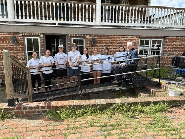 Yay! Saturday was our first build with the club from Patrick Henry High School (in Ashland) as volunteers! We are so excited to have added Hanover to our service area (in addition to Richmond, Henrico and Chesterfield). The mighty team from Patrick Henry was eager to build a ramp for a Hanover resident, Mr. W., who lives in Beaverdam.